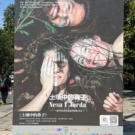 《土壤中的鼻子》(Nesa i Jorda)是由瑞典 ENT 与 KompaniTO 剧团联合制作的马戏表演,面向 6 至 12 岁儿童及家庭观众。该剧通过两位空中杂技演员和一位音乐家的表演,带领观众进入森林的神秘世界。表演中,演员们攀爬、挖掘、平衡和种植,探索树木的高度、土地以及地下的深度。伴随着小提琴梦幻而俏皮的旋律,演员们揭示真菌如何像电话线一样连接整个地下世界,帮助树木相互“交流”